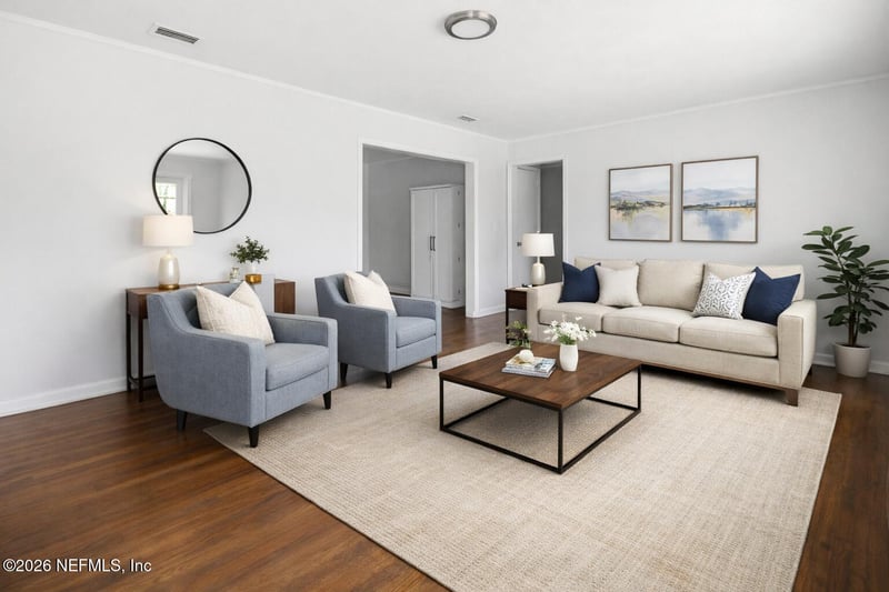 Listing details for 4512 Anvers Blvd, Jacksonville, FL 32210 : A must see! This beautiful 4 bedroom, 2 full baths including a master suite! The home features an open kitchen & living room. Plenty of flex space. Original hardwood floors, a fireplace, granite counters, stainless steel appliances. Home office space, Indoor laundry. Plenty of parking. This is the perfect home that will keep you satisfied for years to come. some pictures have virtual furniture added.