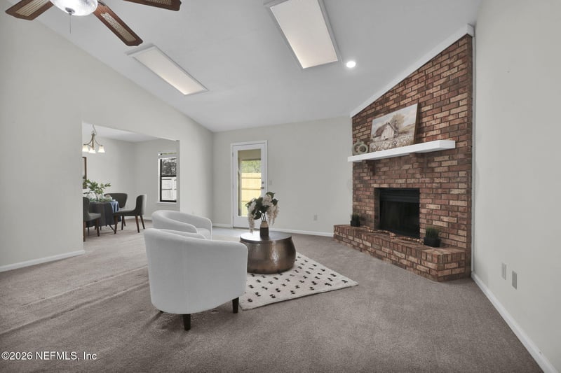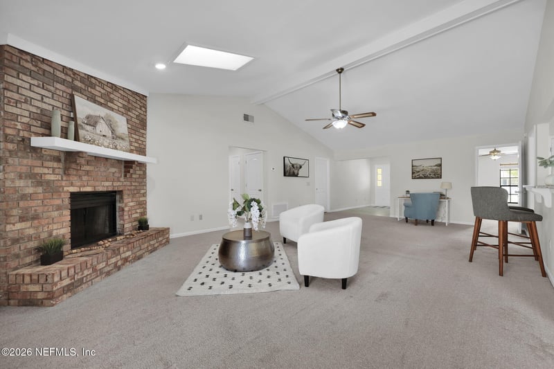 Listing details for 4517 Crosstie Rd, Jacksonville, FL 32257 : Welcome home to this BEAUTIFULLY UPDATED BRICK FRONT GEM full of charm, character & MODERN UPGRADES-with NO HOA! From the moment you arrive, you'll fall in love with the inviting WRAP-AROUND FRONT PORCH, perfect for morning coffee or relaxing evenings. Fresh WHITE PAINT & NEW FLOORING THROUGH-OUT, including the kitchen, create a bright, clean, more-in ready feel. Step inside to a SPACIOUS FAMILY ROOM that truly impresses, featuring VAULTED CEILINGS, a stunning BRICK WOOD-BURNING FIREPLACE, RECESSED LLIGHTING, CEILING, CEILING FAN & SKYLIGHTS that flood the space with natural light-creating the perfect balance of warmth and openness. The UPDATED KITCHEN is a showstopper, offering: *NEW WHITE SHAKER-STYLE CABINETS WITH SOFT-CLOSE FEATURES & updated hardware *GORGEOUS GRANITE countertops *NEW FLOORING *STAINLESS STEEL APPLIANCES SPACIOUS PRIMARY SUITE offers a peaceful retreat with PLUSH CARPETING, WALK IN CLOSET, SPA-LIKE BATHROOM-NEW WHITE SHAKER-STYLE CABINETRY. Newer Roof & HVAC