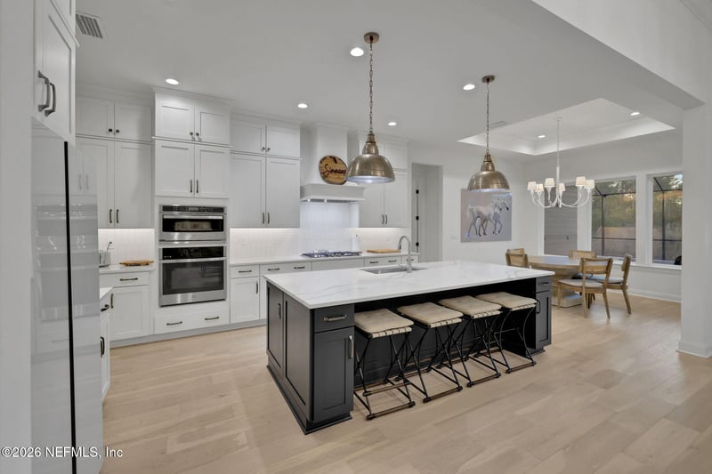 Listing details for 46 Harpers Mill Dr, Ponte Vedra, FL 32081 : Refined design and effortless luxury define this exceptional single-story home in Settler's Landing. A light-filled, open-concept layout features soaring ceilings, wood-plank flooring, and designer finishes throughout. The chef's kitchen offers high-end appliances, custom cabinetry, and generous prep space, seamlessly flowing into the main living and dining areas--ideal for entertaining. The home features a private primary suite with a spa-inspired bath and custom closet system, plus three additional bedrooms and a dedicated office or flex space to fit your lifestyle. Step outside to a private outdoor setting perfect for relaxing or hosting. Located in a sought-after community with top-rated schools, world class amenities, shopping, and dining nearby, this home delivers the perfect blend of style, comfort, and convenience.