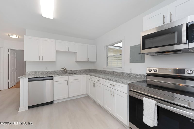 Listing details for 4624 Bird Ave, Jacksonville, FL 32207 : New Price! Come home to this renovated home on an oversized lot, where almost EVERYTHING has been replaced. The home is located minutes from downtown, the Jags Stadium, the St. John's river, restaurants, and parks. A 3-bedroom 1 bath with living area and a carpeted bonus area that can be used as an extra bedroom or office area. The kitchen offers quartz countertops, stainless steele appliances, new vinyl flooring, new sink, and faucet. The bathroom has been beautifully redesigned with shower and tub available. A newer roof and HVAC, new plumbing supply lines, cast iron drain lines have been replaced with PVC pipes, new electrical panel, new water heater, washer and dryer hookups. A new fence encloses the large backyard perfect for pets, and plenty of room for a pool. Like to garden? A deep rock well located in the front side yard is perfect for irrigation. Like peace and quiet? This home is located on a dead-end street on a double lot. Down payment assistance available.