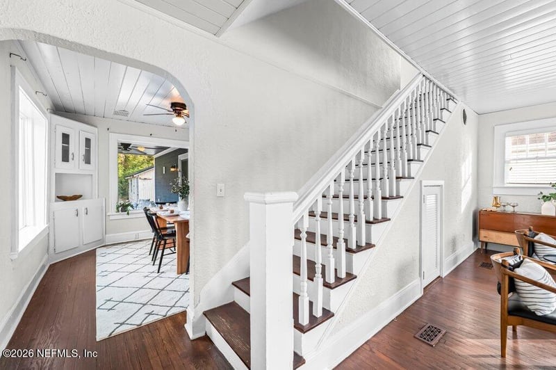 Listing details for 4625 Polaris St, Jacksonville, FL 32205 : A rare gem is located in the heart of Murray Hill. Built in 1928, this beautifully preserved home blends architectural character with carefully curated updates and sun-filled living spaces. Historic charm shines throughout, from the inviting front porch with classic terra cotta tile to wood plank ceilings and original hardwood floors. The home is full of delightful surprises, including a cedar-lined attic hideaway cleverly accessed through a bedroom closet, an unforgettable feature you won't find anywhere else. The primary suite opens to a private terrace, ideal for morning coffee or evening relaxation. A convenient stop-and-drop mudroom and laundry addition adds everyday functionality and includes a full bath with tub, perfect for guests or busy households. Out back, enjoy a cozy porch with a roll-down shade, creating a comfortable retreat year-round. Located just steps from parks and schools, this home offers exceptional walkability, charm, and community in one of Jacksonville's most beloved historic neighborhoods. A truly special home where history, functionality, and a little magic come together.