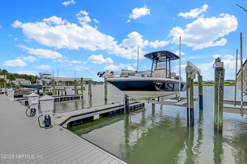 Listing details for 47 Iroquois Ave, St Augustine, FL 32084 : **PRIVATE BOAT SLIP WITH A LIFT**WATERFRONT HOME LUXURY TOWNHOME**NATURAL GAS COMMUNITY** Discover unparalleled LUXURY LIVING in this meticulously maintained corner unit townhome, RIGHT ON THE WATER! Perfect for BOATERS or those seeking a vibrant MARINA lifestyle, this exquisite residence includes a PRIVATE BOAT SLIP WITH A LIFT. Elevator ready! All you need to do is add a lift, should you desire additional convenience and accessibility. Step inside to an OPEN FLOOR PLAN featuring well-crafted details. The grand master suite offers its own LARGE PRIVATE BALCONY overlooking the water and the gorgeous community pool, providing a serene escape. The master bath is equally luxurious, boasting an elegant soaking tub and a walk-in shower with FLOOR-TO-CEILING TILE. Enjoy TWO BALCONIES. A pavered driveway adds to the sophisticated CURB APPEAL. This prime location places you just MINUTES FROM HISTORIC DOWNTOWN ST. AUGUSTINE and its endless attractions, as well as tons of shopping and dining. Experience the epitome of waterfront luxury and convenience in this exceptional home!