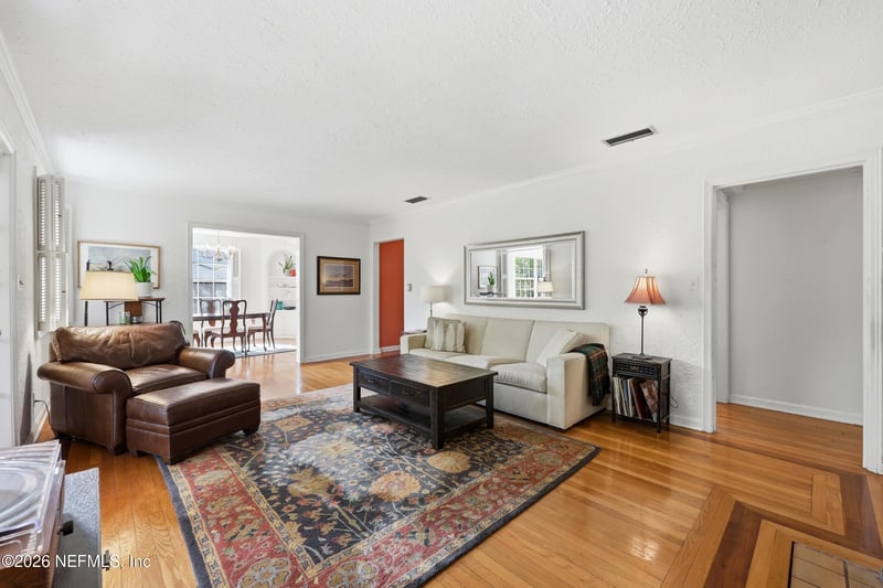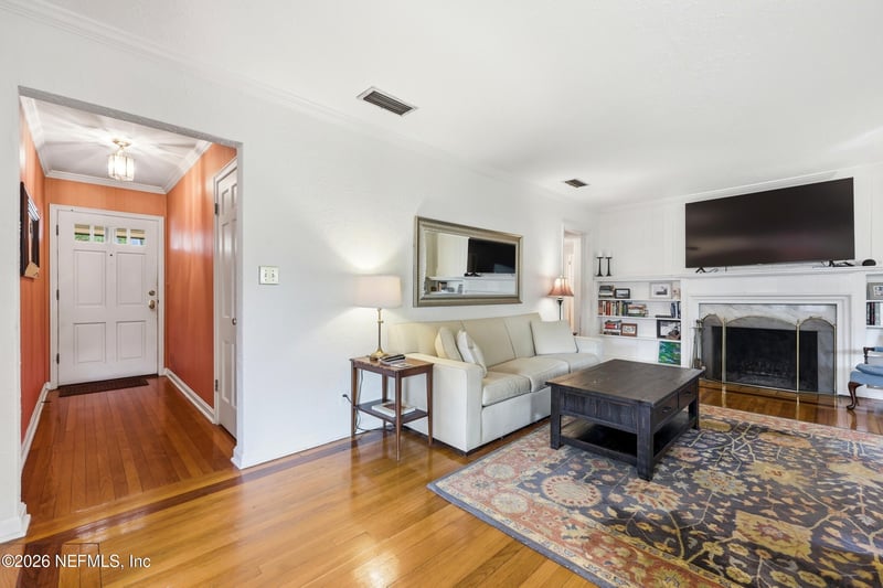 Listing details for 4717 Apache Ave, Jacksonville, FL 32210 : Nestled in the heart of Ortega Terrace, this one-story painted brick home blends classic character with comfortable living. Offering 1,808 sq ft, this 3-bedroom, 2-bath home is ready for new owners. A welcoming foyer opens to a spacious living room with a cozy fireplace, perfect for gathering and entertaining. The formal dining room showcases originally built-in corner cabinets. The inviting den overlooks the private backyard and provides direct outdoor access, creating an ideal space for relaxing or hosting guests. Beautiful oak flooring runs throughout the home. A convenient breezeway connects the house to a one-car garage with additional storage. Perfect for a buyer who is looking to put their own touches on the home.