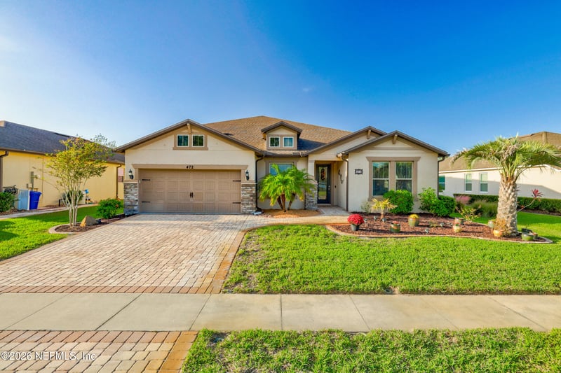 Listing details for 472 Los Caminos St, St Augustine, FL 32095 : Welcome to 472 Los Caminos St in Las Calinas! This 6BR/3.5BA, 4,172 sq ft home features concrete block construction on the first floor, an open-concept kitchen and living area, and a screened lanai with stunning pond views. The primary suite, three additional bedrooms, and a half-bath are all on the main floor. Upstairs offers a large loft, bonus family room, and two more bedrooms. Oversized 3-car garage included. NO CDD community with a pool, trails, soccer field, playgrounds, and kayak launch. Zoned for Palencia Elementary, Pacetti Bay Middle, and Allen D. Nease High. Close to St. Augustine, Jacksonville, and area beaches. VA buyers may be able to assume the seller's loan at ~2.38% -- an incredible opportunity! Schedule your showing today!