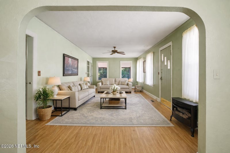 Listing details for 478 Demper Dr, Jacksonville, FL 32208 : Charming home filled with character! This inviting property offers a detached 1-car garage with office, & covered carport, and extended driveway for ample parking. Inside, enjoy a bright, comfortable layout with natural light throughout, well-sized bedrooms, and a cozy, efficient kitchen with plenty of cabinet space. A standout feature is the unique attic area accessed by eye-catching mint green stairs--ideal for a home office, creative studio, guest space, or additional storage. Relax year-round in the spacious glassed-in patio overlooking the backyard, creating a peaceful extension of your living space. The yard offers room to garden, entertain, or simply enjoy the outdoors. Perfect for first-time buyers, downsizers, or investors seeking charm, versatility, and value in one property. Located on a quiet dead-end street, this home offers added privacy with minimal through traffic. Conveniently situated near major roadways for commuting.