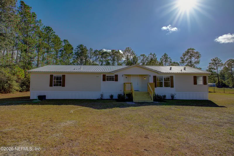 Listing details for 4921 Alfalfa St, Middleburg, FL 32068 : Tucked away on a quiet road, this well-maintained 3-bedroom, 2-bath mobile home sits on 1.14 acres with space, privacy, and flexibility rarely found at this price point. The home features 1,815 square feet of living space with a functional layout and a flex room that could be an office or easily be converted into a fourth bedroom with a simple modification. Recent improvements include a brand-new metal roof and new HVAC system, providing peace of mind for the next owner. Both front and back decks with stairs extend the living space outdoors, overlooking a large fenced lot with plenty of room to spread out, garden, store equipment, or enjoy quiet evenings without close neighbors. The standout feature of this property is the 30x40x12 workshop with roll-up doors and electric. Whether you need space for a business, vehicles, tools, hobbies, or storage, this shop gives endless possibilities and is a rare find in the area.