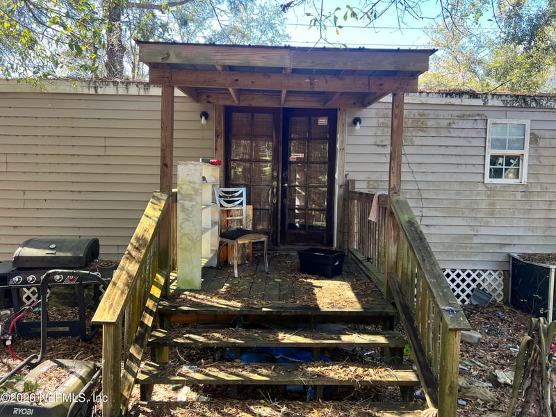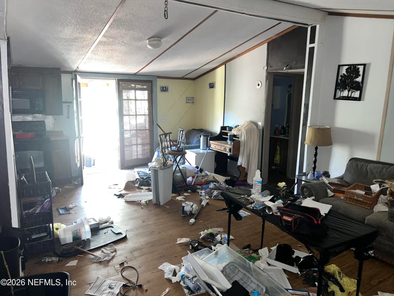 Listing details for 4980 Avenue B, St Augustine, FL 32095 : Investor opportunity in Saint Augustine with value-add potential on a nearly half-acre lot. Roof is under 10 years old but previously had a leak. Property will require a full interior cosmetic rehab to be brought back to market standard. Interior scope includes flooring replacement with some soft spots present, along with general updates throughout. Exterior work needed includes replacement of the front deck, siding repairs, and skirting repairs on the mobile home. Solid project for an investor looking to renovate and resell or hold once repairs are completed.