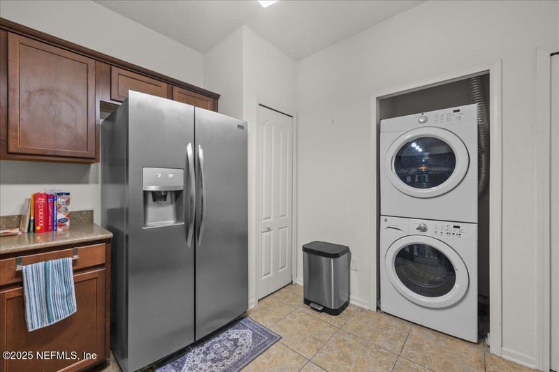 Disposal, Dishwasher, Electric Cooktop, Electric Oven, Electric Water Heater, Microwave, Refrigerator and Washer/Dryer Stacked