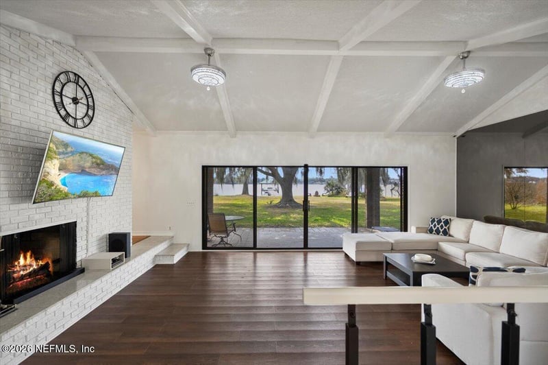 Listing details for 500 Broward Rd, Jacksonville, FL 32218 : Come see this unique River Retreat in this raised Brick Estate home! Whether you love sunrise or sunset, you'll enjoy stunning views from the house, stone fire pit, dock swing, or floating dock. As you open the double front doors, you step into a newly renovated open living space with vaulted ceilings, new floor, a gas fireplace, and expansive water views -- Traditional, yet with a modern update, the perfect setting for entertaining friends and family. The dock is already equipped with lights, water, and electricity. And comes with multiple porches, a workshop, a 2 car garage and Carport for your boat. With 120 feet of riverfront, an 18-inch bulkhead, and deep water, this is an ideal spot to fish, relax, or watch dolphins make surprise appearances. A boat ramp is just ½ mile upriver, and you can navigate your boat or jet skis only 19 miles to the Atlantic Ocean! Set on just under an acre at the end of a dead-end street, in the exclusive Broward Pointe community fully fenced and the property also features a new privacy fence and bamboo trees in the backyard. With no HOA, you have complete freedom and flexibility. The owner even received an estimate to add an in-law suite/ADU. Large windows and doors throughout -- from the garage to the dining room, kitchen, and living room -- flood the home with natural light. With remodeled kitchen with ample storage and granite countertop and updated bathrooms this home is a mix of function and comfort. Come see your new home today!