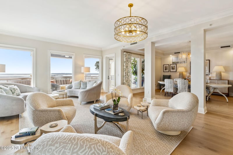 Listing details for 5023 First Coast Hw #201B, Fernandina Beach, FL 32034 : This beautifully redesigned condo, captures some of the most spectacular long-range Intracoastal views on Amelia Island. This stunning residence features a spacious one-level floor plan, complete with direct elevator access for ultimate convenience.The gourmet kitchen showcases high-end Sub-Zero and Wolf appliances and custom cabinetry designed w/ special attention to detail of every element for silverware, cookware, and extra storage. Entertain in style with a custom bar area that boasts a Sub-Zero wine cooler, perfect for hosting gatherings. The primary suite features his/her California Closets, and a stunning bathroom w/ dual vanities, & a stunning walk-in ''wet area'' with a shower and large soaking tub. Rich wood floors add warmth and style throughout the condo. Relax in the cozy den, ideal for movie nights or simply unwinding after a long day. Step outside to your covered deck overlooking the marsh. This property comes with a boat dock, boat lift and 2 dedicated parking spots.