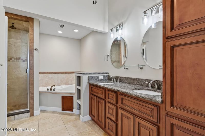 Listing details for 5023 Tan St, Jacksonville, FL 32258 : Welcome home to this beautiful 3-bedroom 2 bath home in the heart of Mandarin! Featuring a fully fenced 60' wide and 214 deep (fully cleared) .3 acre preserve view lot with NO HOA or CDD! 40-foot-long driveway to park anything you like! RV, boat, 5th wheel ect. This very well-built home with hardy board Cementous siding features an open floor plan, no carpet, granite countertops, wood burning fireplace, and beautiful custom bathrooms. The master suite features a very large walk-in closet with custom built in shelving, office space, and large bathroom with walk in tile shower and jacuzzi tub. Priced to sell quick under $400k!