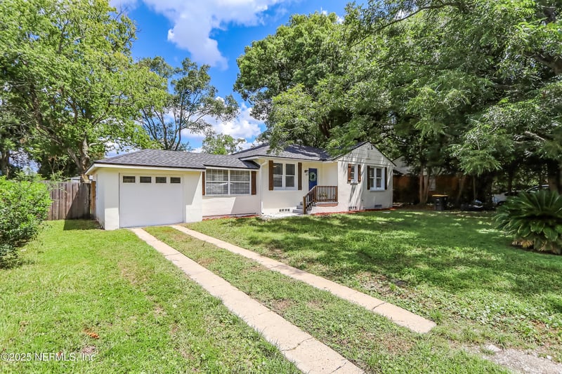 Listing details for 5121 Attleboro St, Jacksonville, FL 32205 : Charming 1946 concrete block stucco home offering timeless appeal on a spacious 0.19-acre lot! This 3-bedroom, 1-bath gem boasts 956 square feet of cozy living space with original hardwood floors that add warmth and character. Bonus room adds another 100 square feet of space and could be a great home office or play room. Major updates include a new roof in 2021 and a water service in 2021, providing added peace of mind for years to come. Situated on a 75x113 ft lot, this property features a spacious backyard perfect for gatherings, gardening, or simply relaxing. A detached shed offers extra storage, while the attached garage adds convenience. Enjoy the benefits of city water and sewer services in a quiet, established neighborhood, close to all the amenities and major thoroughfares. Whether you're a first-time homebuyer, investor, or looking to downsize, this home is full of potential and ready for your personal touch. Don't miss your chance to own a piece of vintage charm with plenty of outdoor space to make it your own!