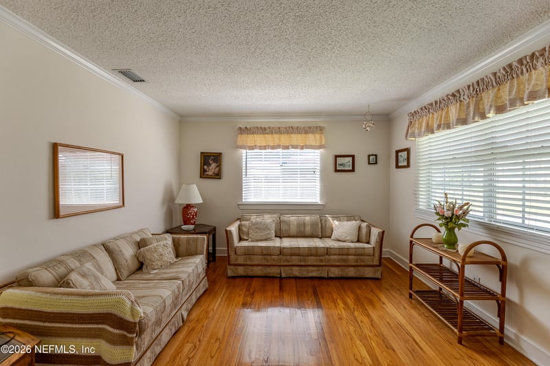 Listing details for 5289 Magnolia Cir, Jacksonville, FL 32211 : This is a charming and well-maintained 3BR/1.5BA home in desirable Arlington! Built in 1953, this home sits on a spacious 70' x 140' lot and offers a flexible layout with room to grow. Features include Berber carpet in the living room and bedrooms, hardwood flooring throughout much of the home, and crown molding in the dining room, foyer, and sitting room. The front sitting room can easily serve as a 4th bedroom, home office, or flex space. Ceiling fans in the living room and bedrooms provide added comfort. Enjoy a large screened-in back porch, perfect for relaxing or entertaining, and a 2-car garage. Kitchen appliances convey, including stove, microwave, refrigerator, and dishwasher. Major updates include a 2009 roof, 2019 HVAC, and newer water heater. City water with septic keeps utility costs low. Conveniently located within walking distance to the St. Johns River and Arlington Boat Ramp, plus close to shopping, dining, and major roadways.