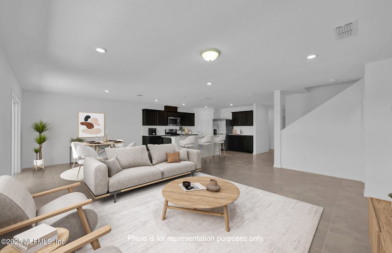 Listing details for 5489 Longfin Ct, Jacksonville, FL 32244 : Welcome to the Wakefield—a thoughtfully designed two-story home with timeless Coastal charm, perfect for growing families. This spacious layout includes 4 Bedrooms, 2.5 Bathrooms, a generous upstairs Loft, and Open-Concept living areas that create a warm, connected atmosphere. The heart of the home is a bright, inviting Kitchen featuring sleek Quartz Countertops, Sarsaparilla Cabinetry, a Classic Subway Tile Backsplash, a large center Island ideal for meals or homework, and Whirlpool Stainless-steel Appliances. The kitchen flows effortlessly into the cozy Café and expansive Gathering Room, while sliding doors open to a Covered Lanai—perfect for outdoor relaxation. The main-floor Owner's Suite offers a private retreat with a roomy Walk-in Closet, Dual-sink Vanity, and a Walk-in Shower. With the included Move-In Ready Package—Whirlpool Refrigerator, Washer, Dryer, and Blinds throughout—this home is ready for you to settle in. Schedule your tour today!