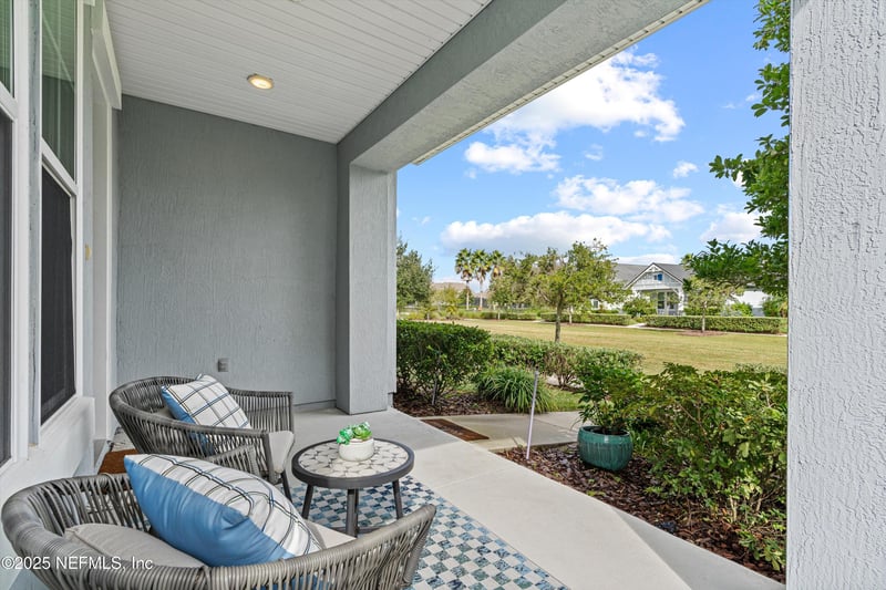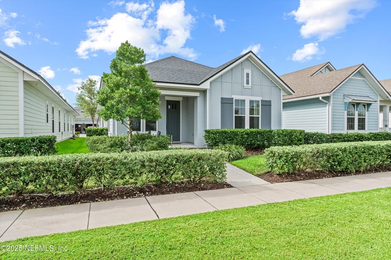 Listing details for 56 Bloom Ln, Ponte Vedra, FL 32081 : Addison Park at Nocatee - One level and Energy Star Certified - Across from the Greenbelt - Screened lanai - Walk to Town Center - Built 2017 - 2-car garage. Located in the heart of Nocatee's sought-after Addison Park, this Providence-built Bryant plan combines energy efficiency, modern design, and easy access to resort-style amenities. The home faces a peaceful greenspace and features 3 bedrooms, 2 full baths, and 1,876 square feet of single-level living. The open-concept kitchen and family room offer comfortable flow for entertaining or relaxing. A gas cooktop, convection oven, and large island anchor the kitchen. The large primary suite includes a spacious walk-in closet and a tiled shower. Two additional bedrooms provide flexibility for guests, an office, or hobbies. Enjoy mornings or evenings on the screened lanai overlooking the landscaped yard with full irrigation. Additional features include luxury vinyl plank and tile flooring in main areas, ceiling fans, smart-home wiring, and a two-car garage with rear alley access. Living here means being part of the award-winning Nocatee community offering parks, fitness centers, pickleball and tennis courts, water parks, playgrounds, dog parks, and scenic walking trails. The Town Center's restaurants, groceries, and shops are under a mile away, and the beaches of Ponte Vedra and Jacksonville's business districts are within a short drive. Low HOA fees and Energy Star certification help keep ownership costs manageable. This move-in-ready home pairs comfort and convenience in one of Northeast Florida's most vibrant planned communities.