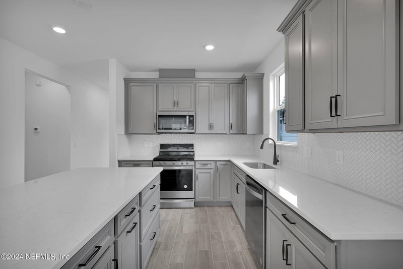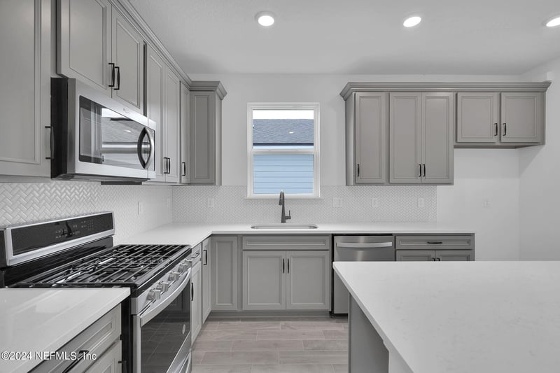 Listing details for 565 Continuum Loop, Yulee, FL 32097 : This new-construction Contour floorplan showcases our Coastal Elevation and features 2 bedrooms, 2 bathrooms, Flex Room - perfect for an in-home office or gym, and open concept home design that makes entertaining a breeze. Enjoy cooking in a beautiful Gourmet Kitchen with Whirlpool Stainless-Steel Appliances, Stone Gray Cabinets accented with a White Diamond Herringbone Tile Backsplash, Quartz Countertops, and Kitchen Island overlooking your Café and Extended Gathering Room that leads to your Covered Lanai with Gas Line Stub. The Owner's Suite features a large Walk-In Closet, Dual-Sink Vanity with Soft Close White Cabinets, Quartz Countertops, Private Water Closet, Linen Closet, and Walk-In Glass Enclosed Shower.