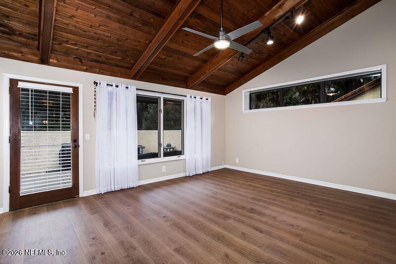 Listing details for 57 Winterbourne St #15, Orange Park, FL 32073 : All the charm of old Florida landscaping and all the beauty of a modern, move-in-ready patio home. Beautiful open floor plan with a gorgeous tongue and goove wood vaulted ceiling opens to outdoor living in your large, walled back yard. NewSpanish-style tile roof in 2022, AC in 2025, water heater in 2024, trek deck in 2024, new tile baths, new tile floors, LVP in bedrooms, and AC in garage - the work is done! HOA covers landscape and lawn care, sprinklers are on well water (saves money!) On the grounds with Club Continental and River House (separate membership fees - see clubcontinental.com) with sweeping views of the St. Johns River.