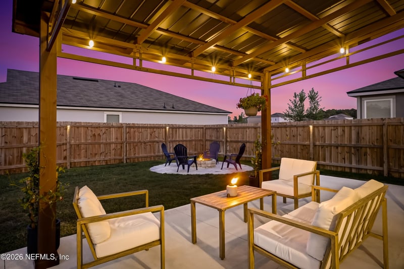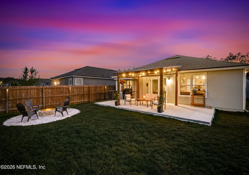 Listing details for 5733 Spruce Alder Way, Jacksonville, FL 32219 : Better than new and loaded with upgrades you won't find from the builder! This 4BR/2BA single-story home offers 1,856 sq ft of thoughtfully enhanced living space, built in 2025 and featuring over $30K in custom improvements. Standout touches include beautiful custom woodwork throughout, brand new vinyl flooring in the primary suite, and fresh interior paint. Enjoy peace of mind with a whole-home water treatment system, full security setup with cameras and sensors, gutters, and irrigation. The fully fenced corner lot sits on a quiet cul-de-sac with serene west-facing views toward Cary State Forest. Out back, entertain in style on the 25x14 concrete pad with a 14x12 pergola and custom fire pit. Located in amenity-rich Copes Landing with pool, fitness center, splash park, and trails. Homes with this level of upgrades don't come around often--schedule your showing before it's gone!