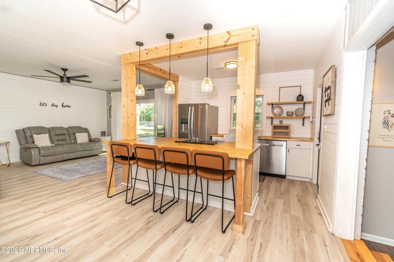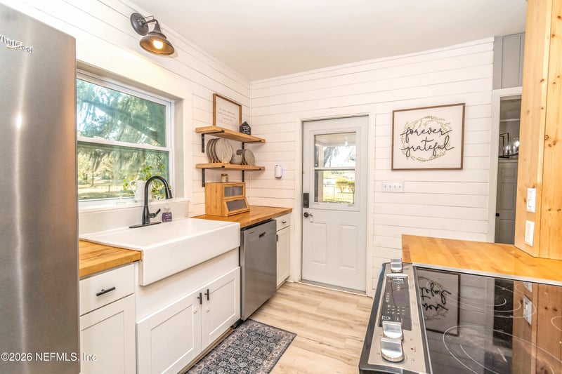 Listing details for 580 3rd St, Lake Butler, FL 32054 : WELCOME HOME to this beautifully renovated 4 bedroom, 3 full bathroom home offering timeless Southern charm and modern updates. Located on approx. 1.19 fully fenced acres in the heart of Lake Butler, this move-in ready home blends a welcoming, cozy feel with spacious living areas designed for comfort and functionality. Featuring TWO primary suites with fresh renovations throughout and a brand-new, 2025 roof, this one is sure to WOW you! The property is high and dry with no flood zone or wetlands, offering usable land and added confidence for future plans. Mature oak trees and magnolia trees create stunning curb appeal and natural shade, while the expansive yard provides plenty of room for outdoor living, recreation, or entertaining. A large treehouse with a playset turns the backyard into a magical spot ready to make memories for years to come. The property also includes two substantial pole barns (20x20 and 20x30) great for parking, storage, equipment, hobbies, recreational vehicles, and/or an incredible hangout for barbecuing & get togethers. Situated just half a mile from Lake Butler's Lake Park and the public boat ramp, this home provides easy access to outdoor recreation, fishing, and waterfront enjoyment while remaining centrally located within town. If you're searching for a move-in ready home with a beautiful & spacious yard in Lake Butler, Florida, 580 NE 3rd St is the total package. Updates/Upgrades & More: Roof 2024 Large Primary Suite Addition 2018/2019 Kitchen Renovation 2022/2023 Guest Bedrooms Updated 2024 Newer Windows Throughout Water Heater 2018 HVAC 2010 Indoor Laundry Room