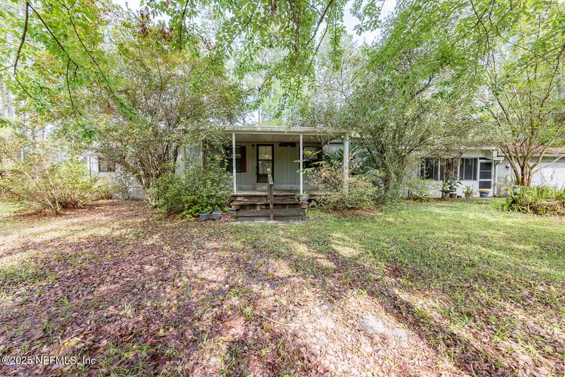 Listing details for 6030 Blueberry Hill Rd, Keystone Heights, FL 32656 : Nestled along a private road, this 1989 mobile home offers a serene retreat on 2.5 wooded acres, combining privacy with natural beauty. The home features a welcoming 12x20 front porch, ideal for enjoying the outdoors, and a spacious 12x24 back porch sunroom, providing a versatile space for relaxation or entertainment. The wood-burning fireplace adds warmth and charm to the living area, creating a cozy atmosphere during cooler months. The property also includes a wood-framed two-car garage, connected by an enclosed sunroom, offering additional storage and workspace. Recent updates, such as a newer HVAC unit and a well with a new pump, ensure comfort and reliability. The metal roof enhances durability, while the septic system adds to the home's self-sufficiency. This spacious 2.5 acres offers endless possibilities - schedule your showing today!