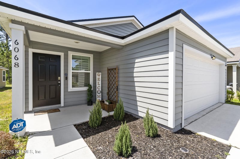 Listing details for 6068 Bucking Bronco Dr, Jacksonville, FL 32234 : Conveniently located just minutes from major employers and destinations like Amazon Fulfillment Center, Mayfair Fulfillment Center, Naval Air Station Jacksonville, Cecil Airport, and the Jacksonville Equestrian Center, this nearly new home offers both comfort and accessibility. Built in 2022 and located in the desirable Winchester Ridge community, this 3-bedroom, 2-bath home is move-in ready. Inside, you'll find an open and functional layout featuring an eat-in kitchen with a large center island, a dedicated dining area, an interior laundry room, and a cozy living space perfect for everyday living and entertaining. Recent upgrades add even more appeal, including beautiful real wood flooring and classic plantation shutters that elevate the home's style and warmth. Step outside to enjoy a welcoming front porch--ideal for relaxing evenings or connecting with neighbors. Out back, the recently extended paver patio provides plenty of space for grilling, outdoor dining, and entertaining.