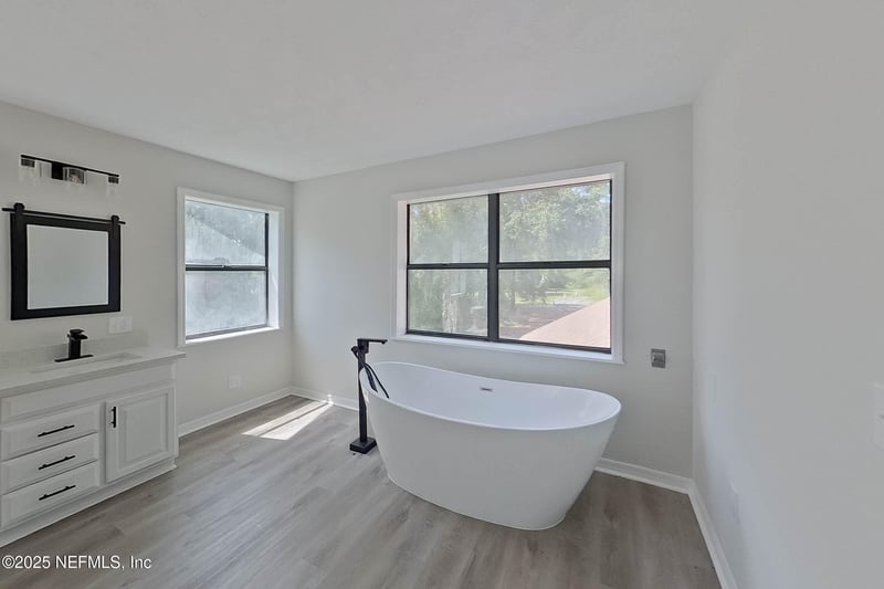 Listing details for 6249 Lake Dr, Starke, FL 32091 : Estate-Style Property with Two Homes, Lake Views, and Endless Potential Come and experience this unique estate-style property set on over 4 acres with stunning views of Kingsley Lake and access through the nearby Army base. Featuring two separate homes, this one-of-a-kind offering provides versatility for multi-generational living, extended family, or rental income opportunities. The main home boasts 5 spacious bedrooms, including a luxurious master suite with a freestanding soaking tub. The additional four bedrooms are arranged as two pairs, each pair sharing its own fully renovated en-suite bathroom. Beautifully updated from top to bottom, the home showcases an expansive open-concept living and dining area, luxury vinyl flooring throughout, fresh paint, modern fixtures, new plumbing, and upgraded lighting. Home comes with a large 30ft easement offering seamless access between both homes and to the rear of the property.