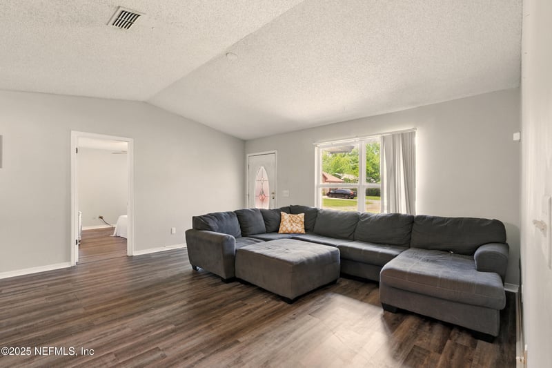 Listing details for 6343 Alfredo Ct, Jacksonville, FL 32244 : 7K CREDIT TOWARD CLOSING COST WITH FULL PRICE OFFER. Welcome to this charming 3-bedroom, 2-bath home featuring an open floor plan filled with natural sunlight. The home boasts luxury vinyl plank (LVP) flooring throughout, with no carpet, offering a modern and easy-to-maintain design. The kitchen is a standout, equipped with quartz countertops, stainless steel appliances, and plenty of cabinet space. Recessed lighting brightens the living areas, and ceiling fans are installed in all bedrooms for added comfort. The bathrooms have been partially updated, blending functionality and style. Additionally, the home offers a flex space, creatively converted from the exterior patio, currently used as a bedroom. This area is fully air-conditioned and heated, making it versatile for various uses. Step outside to enjoy the large backyard, perfect for entertaining, gardening, or simply relaxing. Other key features include a 2013 roof, 2019 water heater, and the convenience of an included washer and dryer. This home is a perfect blend of comfort, functionality, and style, ready to welcome its new owners!