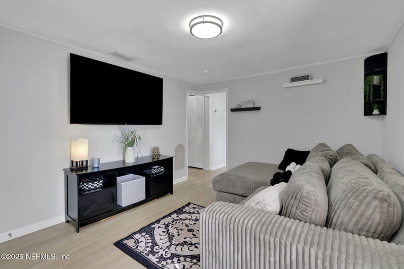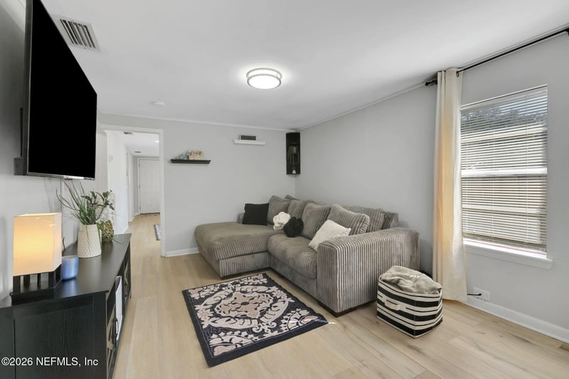 Listing details for 6369 Jammes Rd, Jacksonville, FL 32244 : Welcome to a charming place you'll be proud to call home. This inviting 2-bedroom, 2-bath home offers 830 square feet of comfortable living, thoughtfully laid out to make everyday life feel easy and welcoming. Natural light fills the living spaces, while the two well-sized bedrooms provide just the right balance of comfort and privacy. Step outside to a fully fenced yard that's ideal for morning coffee on the back deck while dreaming of possibilities for the yard. Whether you're enjoying quiet mornings at home or winding down after a long day, this home offers a peaceful retreat with the convenience of being close to shopping, dining, and major roadways.
