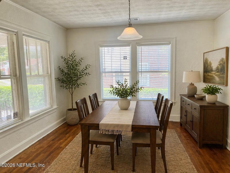 Listing details for 6503 Sapphire Dr, Jacksonville, FL 32208 : Welcome home to 6503 Sapphire Dr -- a charming all-brick gem in Jacksonville now available for sale! This delightful 3-bedroom, 1-bathroom home features real hardwood floors, a cozy wood-burning fireplace, and a formal dining room perfect for entertaining. The spacious kitchen boasts a breakfast nook with generous counter and cabinet space, while brand-new carpet and new appliances add modern comfort throughout. Each bedroom offers ample room to unwind, and the large front porch presents exciting potential for an enclosed living extension. Step outside to enjoy a private backyard retreat and a long driveway providing plenty of parking. With a new 2026 HVAC system, detached garage with washer/dryer connections, nearby Signet Park and convenient shopping, this home delivers exceptional value and everyday comfort. Don't miss this opportunity! Seller is related to the Listing Agent