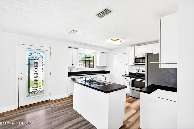 Listing details for 666 Edgewood Ave, Jacksonville, FL 32208 : Charming 3-bedroom, 1-bath brick home with a one-car garage in a convenient Jacksonville location! This well-maintained home features new flooring and fresh paint, a bright and functional layout with separate living and dining areas, and a covered sunroom that can serve as a flex space for an office, playroom, or extra living area. The upgraded kitchen boasts stainless steel appliances and modern finishes, complemented by luxury vinyl plank flooring throughout. Enjoy the oversized fenced yard..perfect for pets, gardening, or outdoor entertaining. With a newer roof and thoughtful updates, this move-in-ready home combines comfort, style, and convenience.