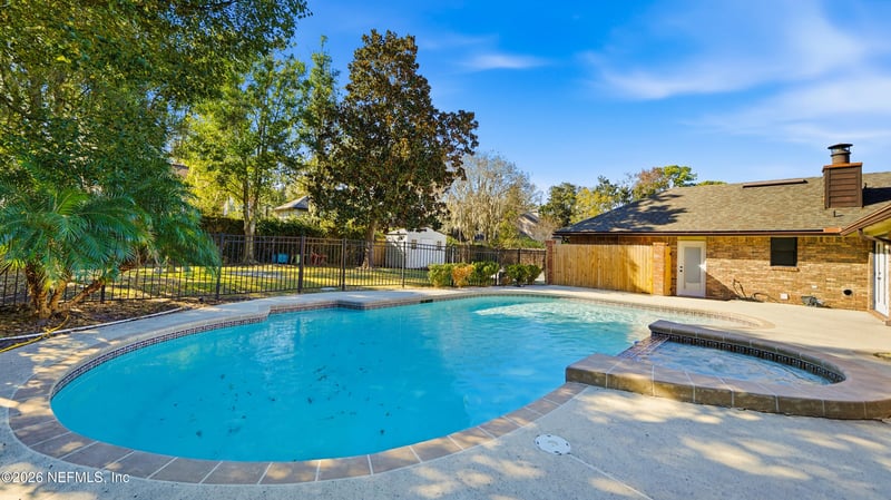 Listing details for 6844 Madrid Ave, Jacksonville, FL 32217 : Beautifully updated all-brick pool home offering space, style, and a highly desirable layout. This large residence features a rare back-loading 2-car garage, enhancing curb appeal while providing added privacy. Inside, recent renovations bring a fresh, modern feel with updated finishes, spacious living areas, and abundant natural light throughout. The flexible floor plan includes multiple living and dining spaces, perfect for entertaining, working from home, or accommodating a growing household. Step outside to your private backyard retreat with a sparkling pool—ideal for relaxing or hosting year-round in true Florida fashion. Solid brick construction adds timeless character and durability. Conveniently located just minutes from San Jose Blvd, major highways, shopping, dining, and medical centers, this home delivers both comfort and accessibility. A rare opportunity to own a move-in-ready pool home with size, upgrades, and an unbeatable location. All information pertaining to the property is deemed reliable, but not guaranteed. Information to be verified by the Buyer. Be advised that cameras may exist recording audio and video inside/outside the property, such as ring doorbells. Photos are digitally enhanced and could be altered, please verify.