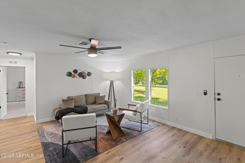 Listing details for 6981 Deer Springs Rd, Keystone Heights, FL 32656 : Large 4/3 home on a spacious 1.25 acre lot located on a paved road across from Deer Springs Lake. Large front and back yards. This home has been remodeled to include (new in 2025) metal roof, septic drain field, HVAC, LVP & carpet flooring, kitchen, baths, appliances and paint. With three living/family rooms, there is plenty of space for comfortable living. The fourth bedroom has a bath en suite perfect for an in law or teen. New decks on all three entrance/exit doors. Come see this one today!