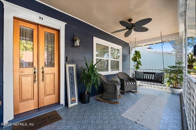Listing details for 71 Kings Ferry Way, St Augustine, FL 32084 : Discover a rare gem on charming Kings Ferry Way, just five minutes from Old Town St. Augustine and a stone's throw to Lake Maria Sanchez. This spacious, meticulously restored cottage embodies the best of coastal living in America's oldest city - lovingly transformed into a home that welcomes you with positive energy and effortless flow. The cottage offers 2 bedrooms, 1 bath, and accommodates up to 6 guests comfortably, making it perfect for families or as a multi-generational getaway. A versatile bonus Florida room, currently used as an additional bedroom, offers exciting potential to be transformed into a luxurious master bath suite. A charming breakfast nook framed by elegant French doors offers the perfect spot for morning coffee. Every detail reflects intentional design and careful curation. Local artist paintings grace the walls throughout, while West Elm furnishings meet thoughtfully selected vintage pieces. Two distinct entertainment areas invite you to embrace Florida living: a front porch with distinct tiled flooring - perfect for swinging in the shade while watching horse-drawn carriages trek to town and back to the stables - and a modern stone backyard complete with smokeless firepit and private outdoor shower. This is a neighborhood that embraces both owners and guests - you'll feel like a local from day one. Lincolnville is St. Augustine's most coveted neighborhood, a 45-block historic district (National Register of Historic Places) known for its eclectic mix of homes, breweries, farm-to-table restaurants, and walkable lifestyle. Minutes to Dog Rose Brewery, The Distillery, Ice Plant, and downtown's renowned dining scene. This property has also proven to be a successful short-term rental for those seeking investment potential, but above all, it's a home that invites you to fall in love with St. Augustine.