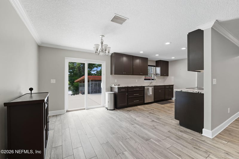 Listing details for 7108 Prellie St, Jacksonville, FL 32210 : Stunning home overlooking expansive serene pond! This residence has been luxuriously updated from top to bottom. The gourmet kitchen boasts brand-new cabinetry, granite counters, stainless steel appliances, and a striking tile backsplash. Both baths shine with designer vanities, granite tops, and upgraded lightingâ''the primary features a spa-worthy tile shower, while the guest offers a relaxing jetted tub. Spacious bedrooms include walk-in closets with built-ins, all enhanced by elegant porcelain tile flooring throughout. Freshly retextured ceilings, new paint, impact steel entry doors, and upgraded windows elevate the home's style and security. Hardwired cameras connect directly to your TV in the living and primary suite. Outdoors, enjoy a fully fenced yard, paver driveway and walkways, and a sprawling patio with space to create your dream cabanaâ''all with tranquil pond views and a private seating area to unwind waterside. Seller will cover costs of kennel removal with acceptable offer. All new shutters on front of the house. New can lighting throughout, washer and dryer will stay in the home with rest of appliances. AC is 2017 with all new duct work, newer roof with 15 years remaining. garage has AC, built ins and epoxy flooring.