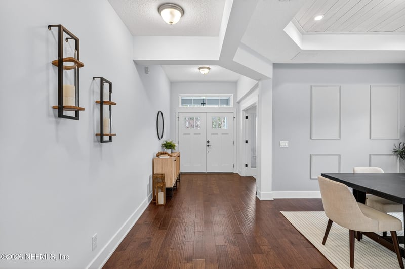 Listing details for 73 Greenview Ln, St Augustine, FL 32092 : Stunning Dream Finders Boca II model featuring 5 bedrooms, 5 full baths, and multiple bonus spaces designed for flexibility and comfort. The open-concept layout showcases a gourmet kitchen with stacked cabinetry, a large island with premium quartz, matching quartz countertops, extensive walk-in pantry, and abundant cabinet space, flowing directly into the main living area with a linear fireplace and brick accent wall and upgraded tray ceilings in the living and dining rooms, with the dining room offering a spacious and inviting area perfect for family gatherings and entertaining.