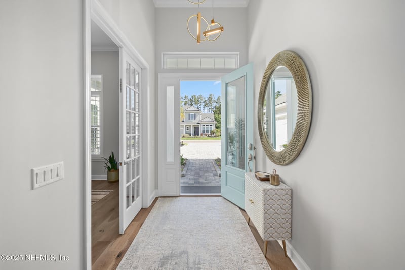 Listing details for 742 Honey Blossom Rd, St Johns, FL 32259 : Welcome to a home that truly takes your breath away. This exquisite one-story Cassia floor plan is a rare find—where refined elegance meets relaxed, resort-style living in a waterfront setting that feels like a private retreat. From the moment you arrive, the beauty is undeniable. Step through the custom glass entry into a light-filled interior featuring soaring 12-foot ceilings, sweeping water views, and impeccable design details. The heart of the home is a shimmering saltwater lap pool with a sun shelf—perfectly positioned to capture Florida's iconic sunsets. Imagine floating in warm water, cocktail in hand, as the sky paints itself in shades of gold, coral, and lavender. The expansive 900 sq ft screened lanai invites effortless indoor-outdoor living with ample space for lounging, dining, and entertaining in total seclusion. It's the perfect backdrop for memorable gatherings or peaceful solitude. Inside, the gourmet kitchen is a chef's dream highlighted by an oversized island, stacked custom cabinetry, a farmhouse sink, designer lighting, and upgraded hardware. It opens seamlessly to a spacious living and dining area, where disappearing sliding glass doors blur the lines between indoors and out. Rich wood flooring adds warmth and sophistication, flowing throughout the main living areas. The spa-inspired owner's suite is a sanctuary of its own, featuring a freestanding soaking tub, a designer walk-in shower, and a fully customized Elfa closet system. A smart 3-way split floor plan ensures privacy and comfort for family and guests alike. Every detail has been thoughtfully consideredfrom the plantation shutters and Bahama exterior shutters to the whole-home surge protection and insulated garage for energy efficiency year-round. Tucked within a gated community in top-rated St. Johns County, this home offers access to A+ schools, upscale amenities, and a lifestyle of everyday luxury. Whether you're seeking a peaceful retreat or a place to entertain in style, this waterfront jewel delivers it all. Live where every sunset feels like a celebration. Welcome home