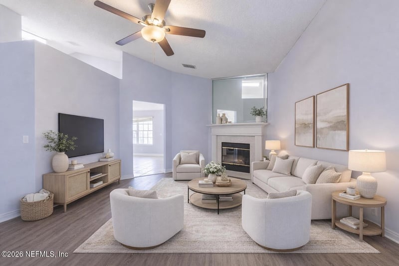 Listing details for 7421 Cliff Cottage Dr, Jacksonville, FL 32244 : Welcome to this move-in ready, brick home that checks all the boxes for comfort, functionality, and value! Thoughtfully designed with a split floor plan, this home offers privacy and flexibility. The heart of the home showcases a wood-burning fireplace and flowing layout that makes the space feel bright and welcoming, with easy transitions between living, dining, and kitchen areas. With white cabinets, stainless appliances, and north facing windows, the kitchen is bright and inviting. The primary suite is a true retreat, featuring an oversized bedroom space full of natural light, double closets providing ample space, and an en-suite bathroom with a large soaking tub, separate shower, and double vanity. The backyard offers a full privacy fence perfect for pets, play, and outdoor entertaining. A new roof provides peace of mind and reduced maintenance for years to come! Located close to shopping, dining, and easy interstate access, this home truly has it all!