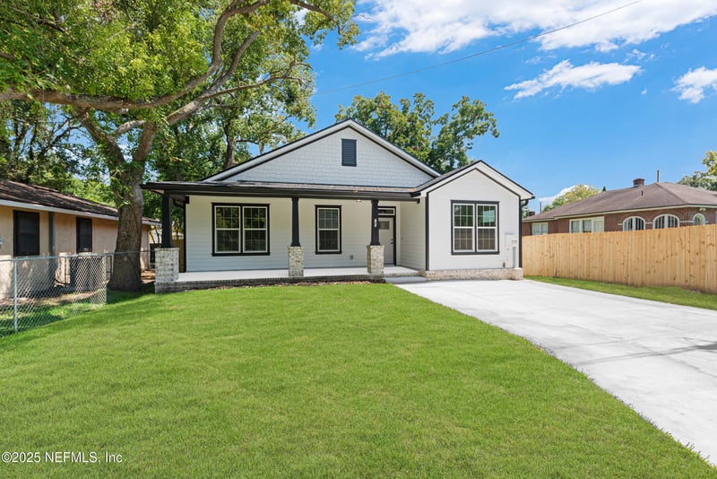 Listing details for 745 Ralph St, Jacksonville, FL 32204 : Brand new 4BR/2BA Riverside Home! This new build combines modern finishes with Riverside charm. Exterior highlights include a brick accent and welcoming front porch. Inside, luxury vinyl plank flows through the family room, dining, kitchen, hall, and bedrooms. The kitchen shines with quartz countertops, 42'' cabinets, crown molding, soft-close drawers, tile backsplash, and stainless steel appliances. Guest bath features tile floors, quartz vanity, and tile shower/tub combo. Generous guest bedrooms and a spacious owner's suite with frameless glass shower and quartz finishes provide comfort and style. Trimmed windows, 5'' baseboards, and recessed lighting add detail. Enjoy a fenced backyard with deck for outdoor living. Ideally located near Five Points, restaurants, and shopping.