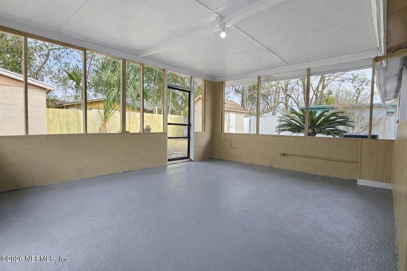 Listing details for 7563 John F Kennedy Dr, Jacksonville, FL 32219 : Step into a beautifully remodeled home where everything feels fresh, clean, and ready for a new beginning. Located at 7563 John F Kennedy Drive E in Jacksonville, this move-in ready property has been thoughtfully updated from top to bottom, offering both comfort and style in every space. Inside, you'll find a bright and open floor plan that makes the home feel larger than its 1,394 square feet. Natural light flows through the living areas, highlighting the fresh interior paint and modern finishes. The kitchen stands out with sleek stainless steel appliances, a functional layout, and a bar-top area that connects seamlessly to the main living space--perfect for everyday living and easy entertaining. With 4 bedrooms and 2 full bathrooms, the layout offers flexibility for a variety of needs, while maintaining a smooth, practical flow throughout the home. Every room feels refreshed and inviting, creating a space that is both comfortable and easy to maintain. One of the standout features is the large screened-in Florida room, offering a relaxing space to enjoy the outdoors year-round. Step outside to a spacious yard that provides room to spread out, along with two storage sheds that add valuable extra space for tools, equipment, or hobbies. A new water heater and multiple upgrades throughout the home bring added peace of mind. Located in the College Park subdivision, this area offers a convenient North Jacksonville location with quick access to major roadways, making it easy to reach downtown Jacksonville, the airport, and surrounding areas. The neighborhood is established and well-positioned near everyday essentials, shopping, and dining options. Fresh, updated, and full of value--this home delivers a clean, modern feel with practical features that make everyday living simple and enjoyable. The information provided in this listing is the best of the seller's/ Listing agent knowledge and cannot be exclusively relied on by buyer. Buyer must independently verify all information pertaining to the property. "Seller never occupied. Neither the seller or listing agent make any representations as to the accuracy of any information contained herein. Buyer/buyer agent must conduct their own due diligence, verifications, research and inspections and are relying solely on the results thereof." Some images in this listing have been virtually staged.