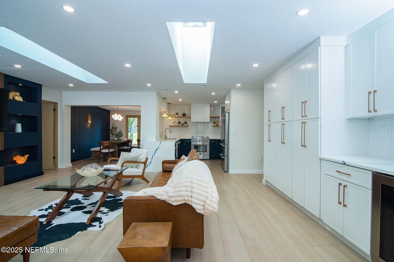 Listing details for 77 Sanchez Dr, Ponte Vedra Beach, FL 32082 : Welcome to One of A kind inside TPC Sawgrass. Tired Of cookie Cutter Homes? Fully and Beautifully Renovated Mid Century Modern!! Private Tree lined driveway. Stunning New Modern garage door. Gorgeous Curb appeal. Interior is well designed, Maximized space for functionality and esthetics. This 1755 Sq Ft Home lives much larger with all the open space. Flowing bright rooms with All new top of the line Chefs kitchen, Waterfall countertops overlooking oversized Family room, You will never want to leave the owners suite featuring Luxurious Spa Bathroom with floating vanity, Smart toilet, and Walkin Wet Room with rain Shower body jets and standing tub. Huge walk in custom Closet with two tone wood and lighting. Office/4th bedroom up front with double glass doors perfect for owners needs. Large back yard with patio overlooking the Creek/Pond. Completely updated Home so bring your suitcase and Golf clubs and tennis gear. After a day on the Golf course, Come soak in your own Master SPA!!