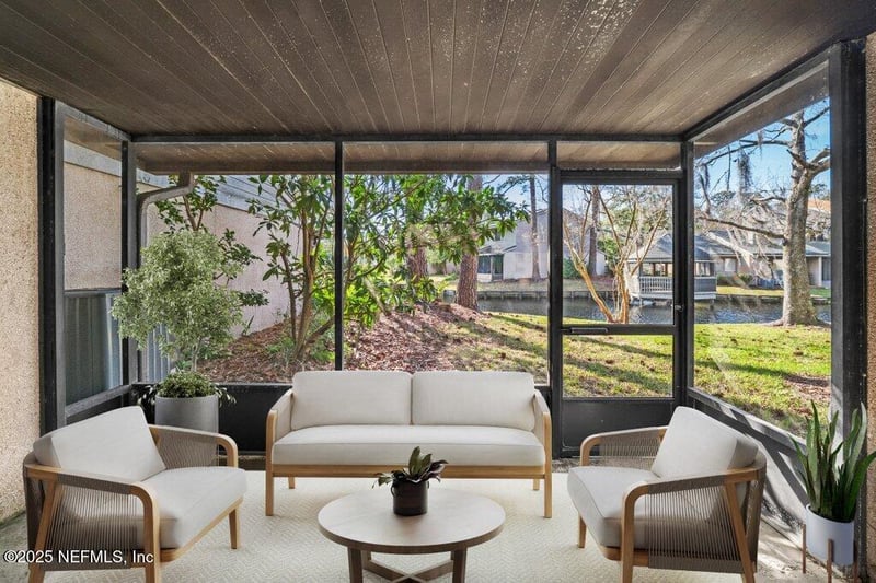 Listing details for 7701 Baymeadows Cir #1154, Jacksonville, FL 32256 : New Great Price on this 3/3 unit with TWO carports! Not every unit in Village Green has a Carport and this one has TWO!!! (#'s 131 & 140) This recently refreshed condo features BRAND NEW flooring and fresh interior paint throughout, as well as updated lighting. Each of the 3 bedrooms has its own FULL bathroom as well as its own SPACIOUS closet. The main floor bedroom can also serve as a home office. Spend chilly nights cozied up in front of the wood-burning Fireplace. Entertain with the convenient wet bar. In nice weather enjoy the tranquil pond view from your screened-in Lanai. There is additional storage with the closet in the lanai and in each of the two dedicated carports. Whether you're looking to relax in your COZY home or entertain guests, this condo provides the perfect setting. Don't miss out on this fantastic opportunity! Please reach out for financing opportunities in this development. Pool is closed until further notice for remodeling.