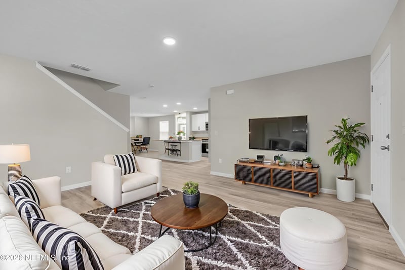 Listing details for 7720 Dandy Ave, Jacksonville, FL 32211 : Brand-new construction you won't want to miss! This thoughtfully designed home offers 4 bedrooms, 2.5 bathrooms, & 1,665 sq ft of stylish living space, complete w/ an attached garage. The primary suite is conveniently located on the main floor, featuring a private ensuite, while 3 additional bedrooms are upstairs making this layout perfect for family, guests, or a home office setup. The kitchen shines w/ granite countertops, a center island, & a brand-new stainless steel appliance package. There are seperate living & dining areas ideal for both everyday living & entertaining. Enjoy durable vinyl flooring throughout the main living areas and plush carpet in the bedrooms for added comfort. Everything is NEW!! New roof, AC, plumbing, electrical—giving you peace of mind and modern efficiency, all backed by a builder warranty. Schedule your private tour today and be the first to call this home yours!