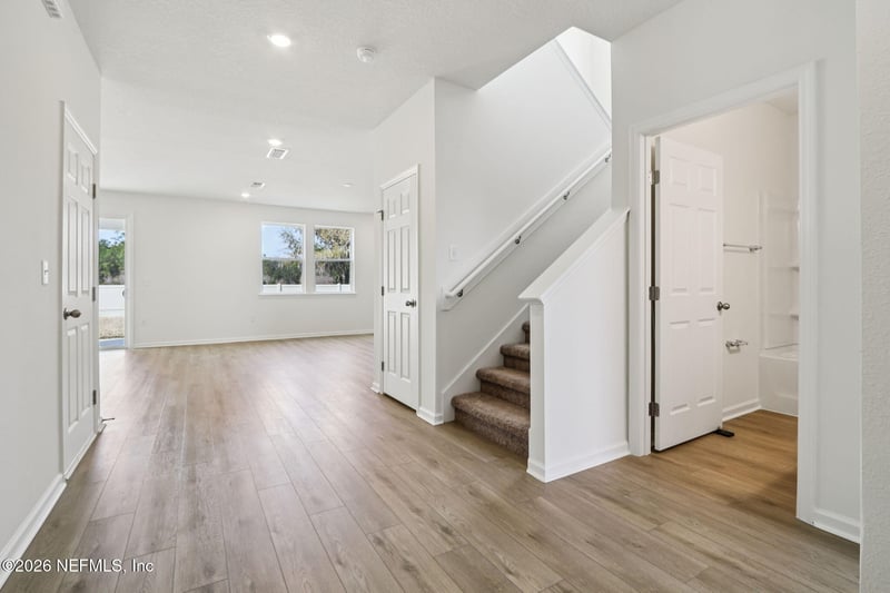 Listing details for 7726 Rippa Valley Way, Jacksonville, FL 32222 : Visit this completed home today! This home features 5 bedrooms, 3 bath and a 2-car garage with covered entry and stone veneer accents. Upon entering you will see the spacious great room, luxury vinyl plank flooring and 9-ft ceilings throughout the first floor. The kitchen includes Woodmont® 42-in. white upper cabinets, quartz countertops, island, and Whirlpool® stainless steel appliances. Completing the first floor is a bedroom and full bath. Upstairs, relax in the primary suite, which features a large walk-in closet and connecting bath that offers quartz countertops, walk-in shower with tile surround, linen closet, and dual-sink vanity. Additional highlights include a dedicated laundry room, smart home package, ENERGY STAR® certified LED lighting, Moen® faucets, Kohler® sinks and a sprinkler system. Enjoy your evenings on the covered back patio. KB Home at Copper Ridge community pool, playground, and dog parks are now open! closing cost assistance available on this home.