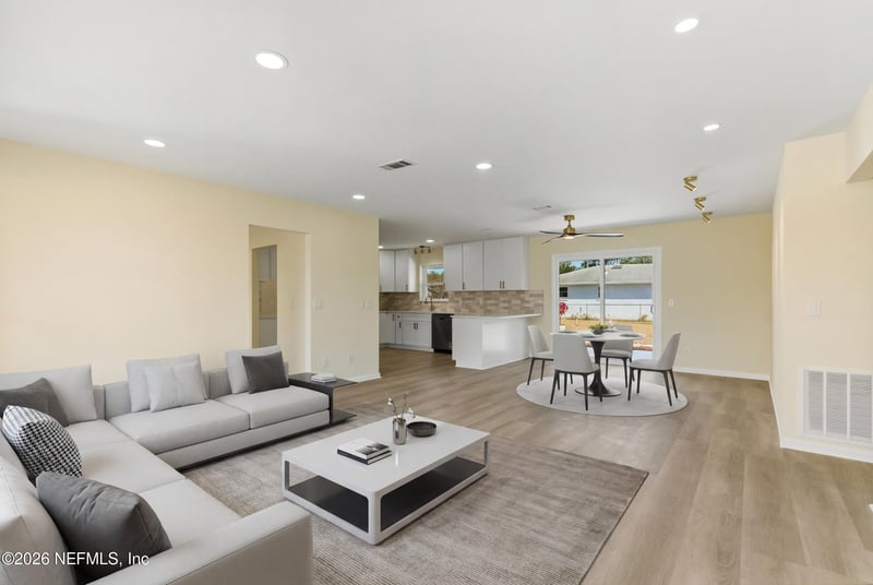 Listing details for 7807 Mendoza Dr, Jacksonville, FL 32217 : OPEN HOUSE | SATURDAY 1/31/2026 | 12-2 PM Welcome home to a stunning, fully renovated residence offering space, style, and comfort at every turn. Positioned on one of the largest corner lots in the neighborhood, this property delivers both curb appeal and space — huge, fully fenced backyard perfect for entertaining, pets, or future additions. Inside, the home showcases 2026-level finishes throughout. The open-concept layout features quartz countertops, brand-new custom cabinetry, stainless steel appliances, and premium LVP flooring. Modern bathrooms finished with premium materials and fixtures. A rare bonus: a massive two-car garage with a dedicated workshop, ideal for hobbyists, storage, or creative projects. Located in the heart of San Jose, you're just minutes from top-rated schools, dining, shopping, and everyday conveniences—with Downtown and Riverside only a short drive away. This is a standout home in a prime location—schedule your showing today before it's gone.