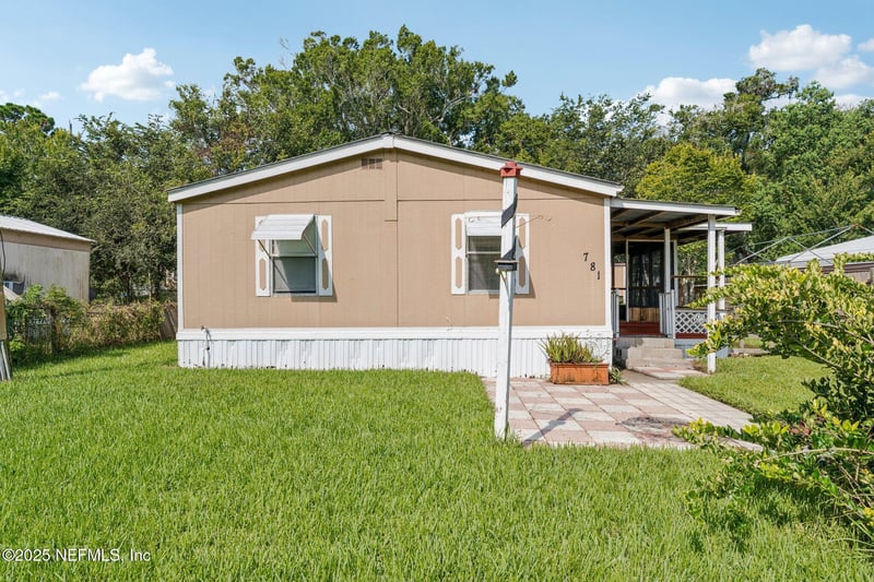 Listing details for 781 Hamilton Ave, St Augustine, FL 32084 : Welcome to your own slice of St. Augustine living, just minutes from the historic district. This well-maintained three-bedroom, two-bath double wide offers 960 square feet of comfortable living on a fully fenced .17-acre lot, providing both privacy and flexibility. The home has been thoughtfully updated with new appliances, new ductwork, and an air-conditioning system less than three years old, plus a brand-new refrigerator for true move-in readiness. The finished, covered front porch creates an inviting space for morning coffee or evening wind-down. Inside, the layout allows for either indoor or outdoor laundry, and two exterior storage sheds add valuable functionality rarely found at this price point. Ideal for a first-time buyer, downsizer, or anyone seeking strong value under $200,000 in one of Florida's most desirable locations. Space, updates, and proximity come together here in a way that's hard to find.