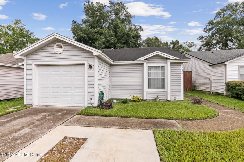 Listing details for 7817 Aquarius Cir, Jacksonville, FL 32216 : **Back on Market - buyer financing fell through**Don't miss this beautifully 2-bedroom, 2-bathroom home in a prime central location! Move-in ready with newer flooring, upgraded plumbing, and stunning French doors that fill the space with natural light. Step outside to your private backyard retreat, complete with a new fence, spacious back patio, and a versatile shed on a concrete pad—perfect for storage or a workspace. Plus, the newly paved driveway and extra parking spot make coming home effortless. This home blends modern updates with cozy charm, offering the perfect mix of convenience, comfort, and privacy. Schedule your showing today—homes like this don't last long!