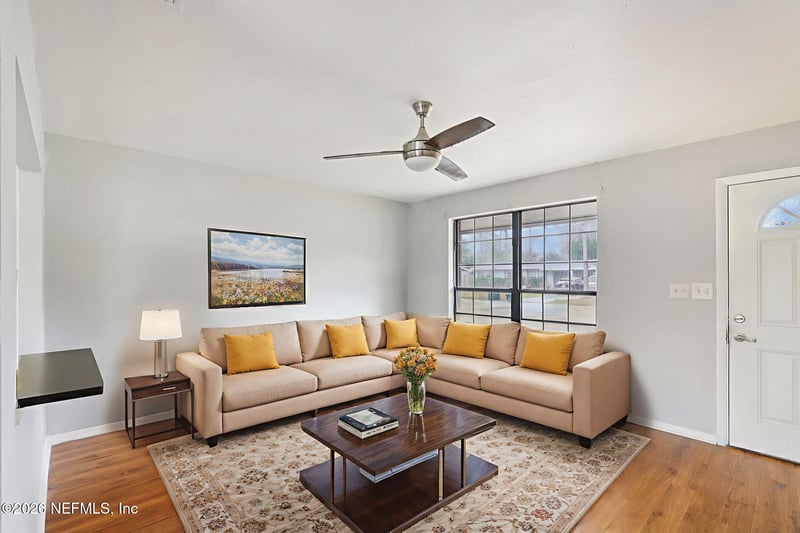 Listing details for 7823 Praver Dr, Jacksonville, FL 32217 : Great opportunity in Jacksonville! This 3-bedroom, 1-bath home offers 1,062 sq ft with several recent improvements and plenty of potential for the next owner to add their personal touch. The kitchen has been opened up and features newer cabinetry and granite countertops, creating a more functional layout. Major system updates include a water heater (2020), HVAC (2021), and a replaced sliding glass door (2021). New flooring has been installed in part of the home, and additional flooring materials to complete the remaining areas are included. The home also features solar panels, which will be paid off at closing and conveyed free and clear to the buyer—offering potential long-term utility savings. Priced competitively compared to nearby homes, this property is a fantastic option for buyers looking for value and the chance to build equity with a little finishing work. Convenient location close to shopping, dining, and commuter routes. Schedule your showing today!