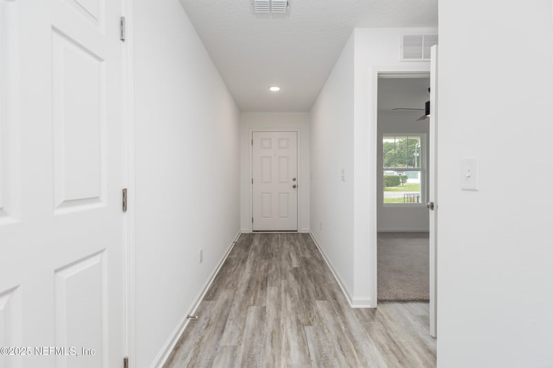 Listing details for 7849 Pipit Ave, Jacksonville, FL 32219 : Brand-new construction—your start to homeownership. 3BR/2BA plan (approx. 1,027 SF) lives big with a bright 15'x16' living room flowing to kitchen/dining, an owner's suite with walk-in closet and full bath, plus two secondary bedrooms and a hall bath. Enjoy a covered front porch, rear patio, indoor laundry, and an 18'x20' two-car garage. Built to current codes with modern safety/efficiency features (LED lighting, interconnected smoke/CO detectors, AFCI/GFCI and surge protection) for added peace of mind. New = fewer surprises—just move in.