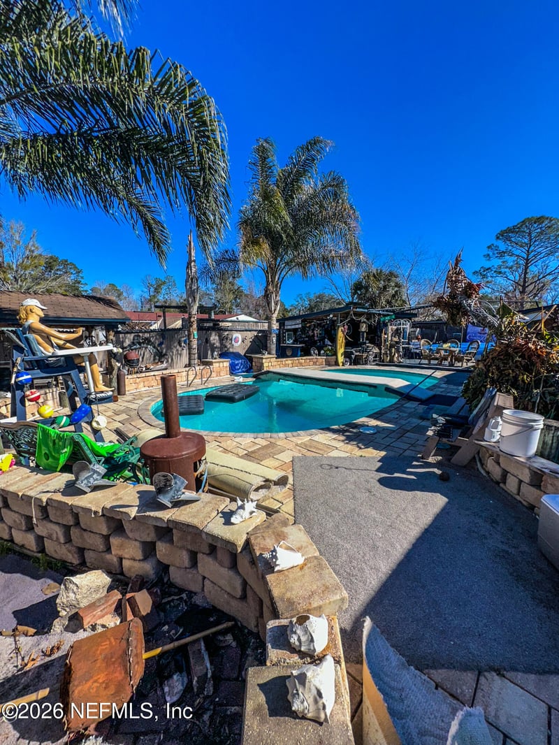 Listing details for 7879 Lancia St, Jacksonville, FL 32244 : Excellent opportunity for investors or buyers looking to renovate and add value. This 4-bedroom, 2-bath pool home offers 1,666 square feet of living space with a functional layout and strong potential for modernization. The property features a large in-ground pool with an expansive pool deck and tiki bar, creating a standout backyard setup ideal for future entertaining. Mature palm trees and a paved driveway add to the exterior character. Inside, the home offers multiple living and dining areas, a spacious kitchen footprint and a large laundry room with ample storage space. The floor plan provides flexibility for reconfiguration or cosmetic updates to maximize value. The home is in need of renovation, making it well-suited for cash buyers, rehab loans, or experienced investors seeking a flip, rental, or long-term hold. With the right updates, this property presents a strong opportunity to capitalize on. This home is sold As-Is