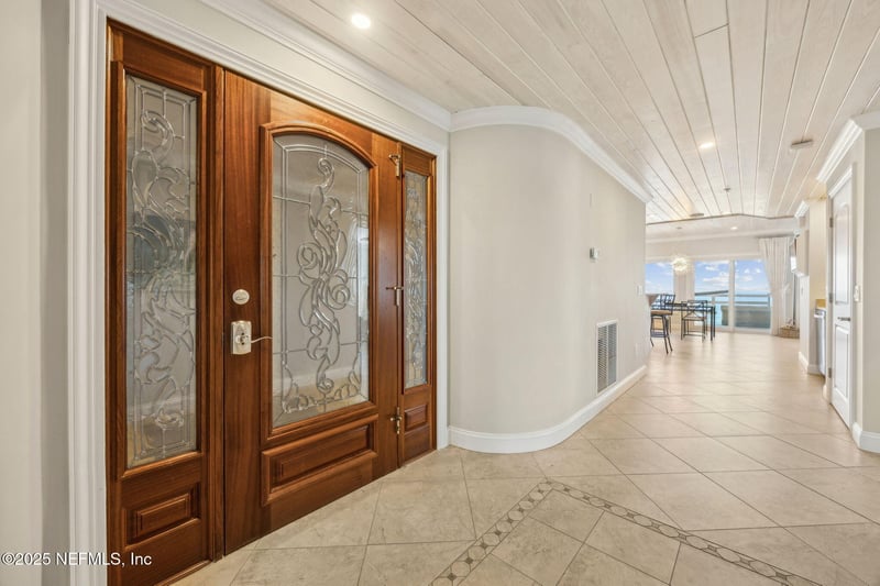 Listing details for 8030 First Coast Hw #110, Fernandina Beach, FL 32034 : 5th floor with panoramic Atlantic views, this Seaside Retreat residence offers the ultimate luxury oceanfront condo experience on Amelia Island- SUNRISE TO SUNSET VIEWS! All in the details- tile flooring and wood ceilings set the tone, while the chef's kitchen features KitchenAid appliances, induction cooktop, and reverse osmosis system. The open plan flows seamlessly to the oceanfront balcony—perfect for sunrise coffee or evening gatherings. The primary suite provides private access to the oceanfront balcony and the bath is complimented with a soaking tub, dual vanities, spacious walk-in closet and plantation blinds framing the views. The guest room offers flexibility with a custom Murphy bed and additional walk-in closets and SUNSET RIVER BALCONY. Modern comfort is ensured with a new Trane 16 SEER HVAC and IQ Fiber connectivity. Seaside Retreat is a private, gated enclave with direct private beach access, tennis, pickleball and private pool!